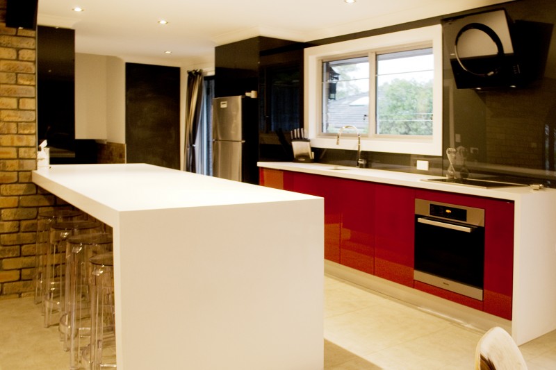High gloss kitchen with red and black high gloss doors.